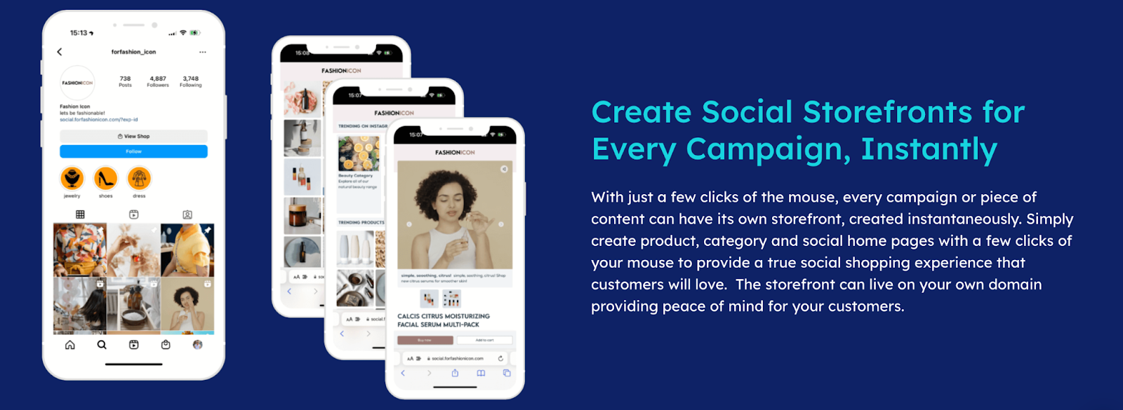 - Build multi-campaign social storefronts in real-time